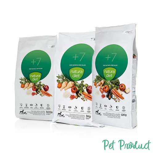 Aliment complet et naturel, biologiquement adapté aux chiens adultes de plus de 7 ans, quelle que soit leur race. Natura Diet +7 ralentit le vieillissement, prévient les troubles séniles, favorise la santé oculaire et renforce le système immunitaire des chiens.
